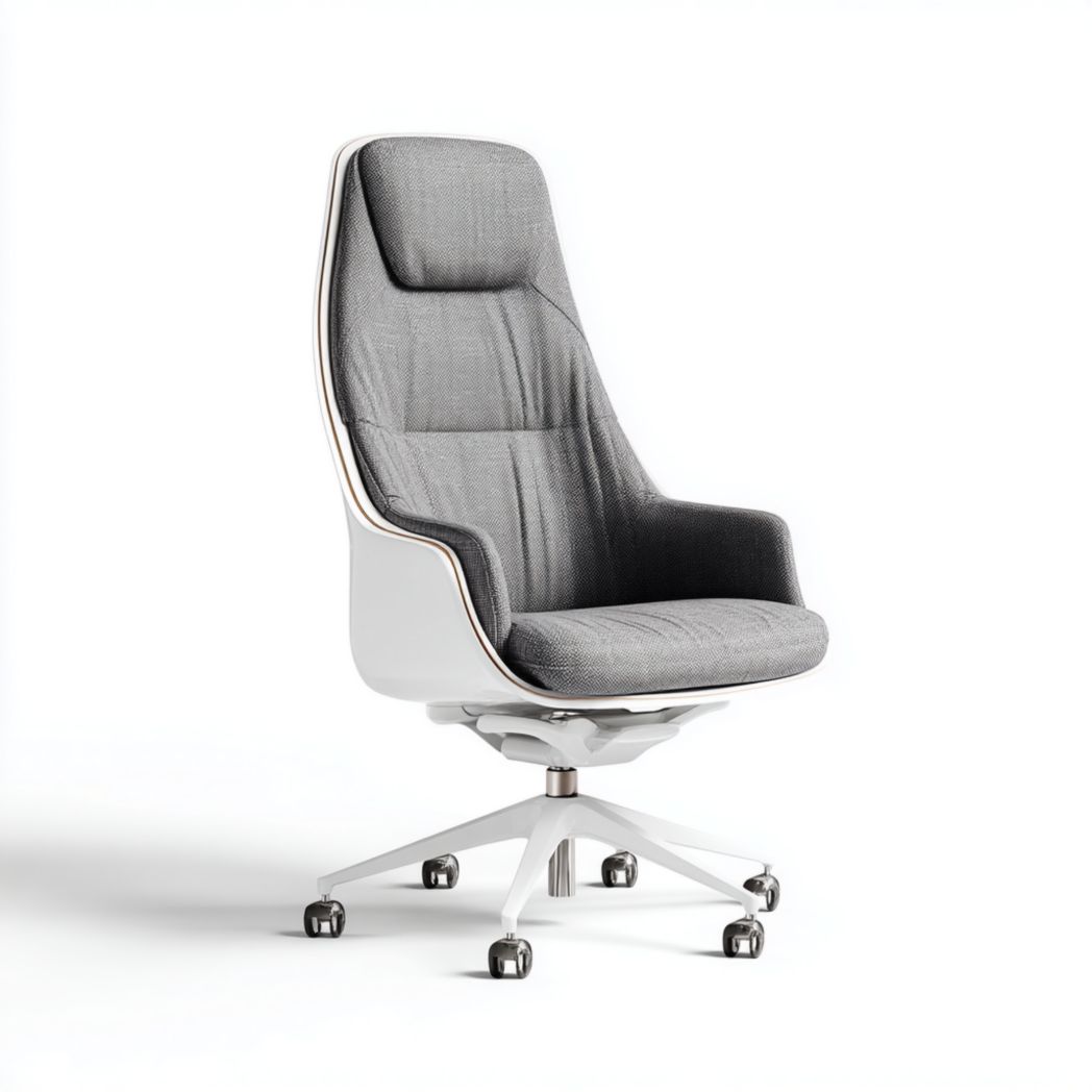 Chaise de bureau pivotante à dossier haut avec revêtement en tissu et coque blanche - Gris