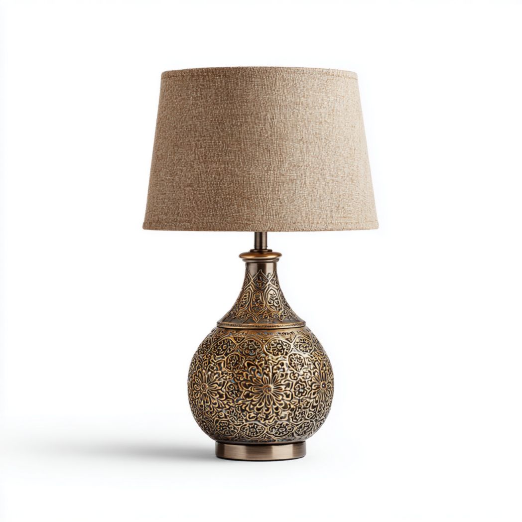 Lampe de table en céramique décorative avec abat-jour en tissu
